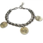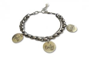 The Bohemian Bracelet w/charms ~ A great gift any mother or grandmother will cherish for a lifetime! This oxidized mixed chain features a collection of custom inscribed charms, hand hammered sterling 9/16 inch discs, with inscribed names and birth dates of the children.